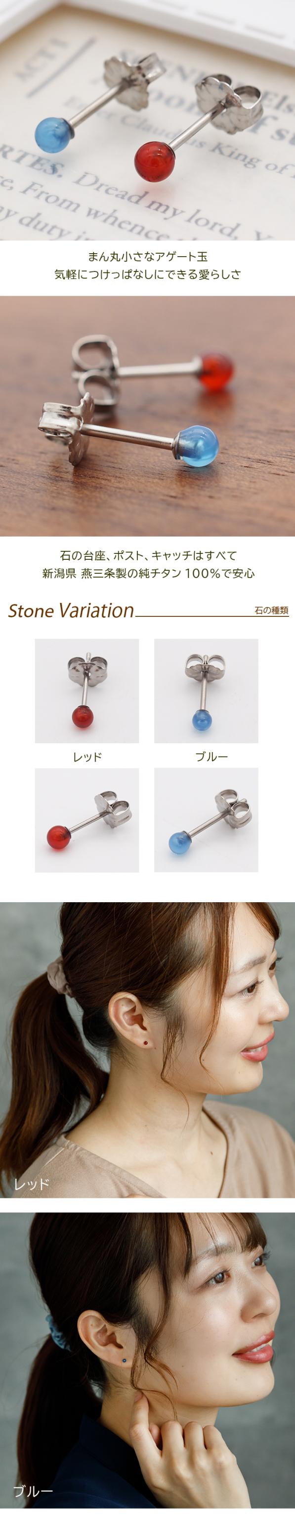 | セカンドピアス ピアス 純チタン 丸玉 ボール 3mm 天然石 アゲート メノウ 金属アレルギー対応 シンプル ひと粒 |