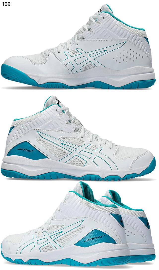【4月上旬入荷予約商品】 普通幅 アシックス ジュニア キッズ ダンクショット MB 9 バスケットボールシューズ バッシュ ミッドカット ミニバス 小学生 ホワイト 白 ブラック 黒 ブルー 青 送料無料 asics 1064A006