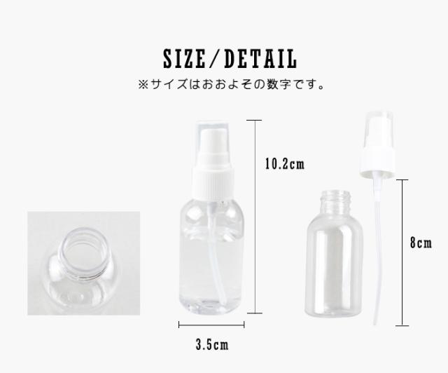 容量 50ml 全長 約10.2cm(スプレー部分含む) 口径部 約1.5cm 直径 約3.5cm ノズル 約8cm |