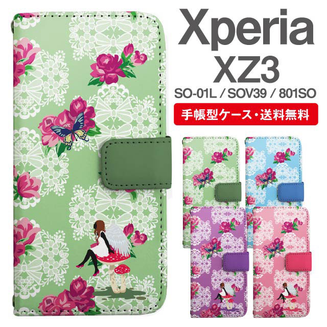 スマホケース 手帳型 Xperia XZ3 エクスペリア SO-01L SOV39 801SO 携帯ケース カバー 送料無料 花柄 フラワー アラベスク レース柄 ガール agesugi_ssm