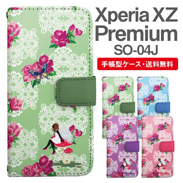 スマホケース 手帳型 Xperia XZ Premium エクスペリア SO-04J 携帯ケース カバー 送料無料 花柄 フラワー アラベスク レース柄 ガール agesugi_ssm