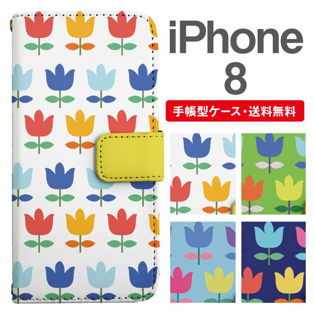 スマホケース 手帳型 iPhone8 アイフォン 携帯ケース カバー 送料無料 花柄 フラワー チューリップ 北欧 agesugi_ssm