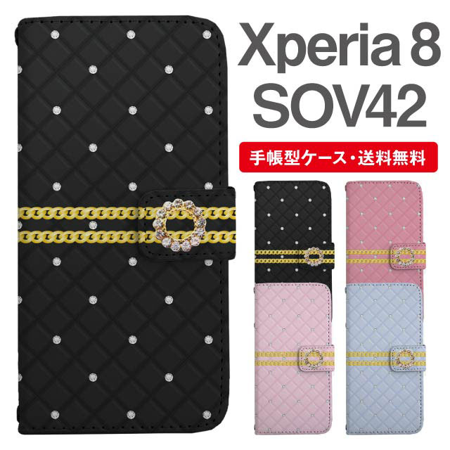スマホケース 手帳型 Xperia 8 エクスペリア SOV42 携帯ケース カバー 送料無料 キルティング風 フェイクデザイン ガーリー agesugi_ssm