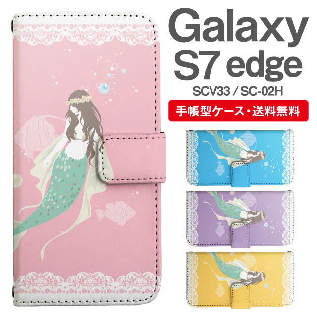 スマホケース 手帳型 Galaxy S7 edge ギャラクシー SC-02H SCV33 携帯ケース カバー 送料無料 マーメイド 人魚姫 agesugi_ssm