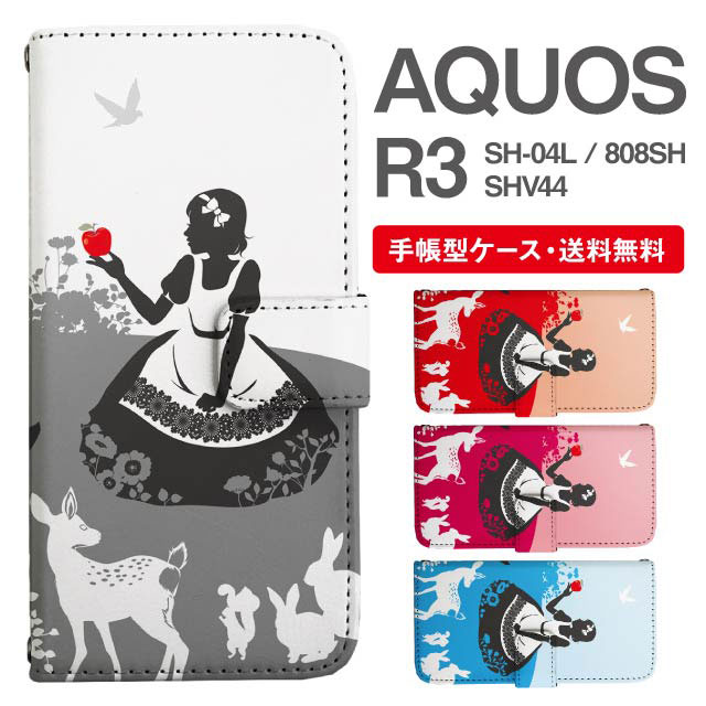 スマホケース 手帳型 AQUOS R3 アクオス SH-04L SHV44 808SH 携帯ケース カバー 送料無料 白雪姫 プリンセス agesugi_ssm