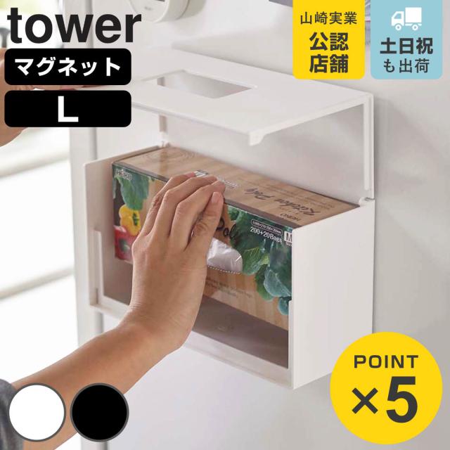 tower 山崎実業 前から開くマグネットボックスホルダー タワー L ( 山崎実業 タワーシリーズ ボックスホルダー マグネット 冷蔵庫収納 ストッカー ホルダー ケース 冷蔵庫 磁石 ボックス BOX 詰め替え ストック 壁面収納 キッチン タワー 山崎実業 tower キッチン)