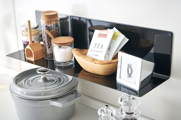シンプルな設計なので置きたい物を自由に置けるラックです。お料理によく使う調味料から時計や小物までアイデア次第でいろんな使い方ができます。ワイドサイズで広々使えて、毎日のキッチン仕事が快適になります。