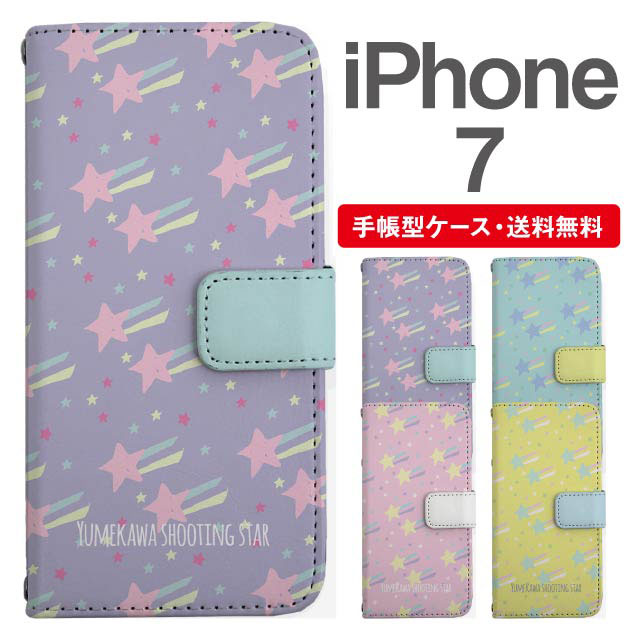 スマホケース 手帳型 iPhone7 アイフォン 携帯ケース カバー 送料無料 流れ星 スター ゆめかわ agesugi_ssm