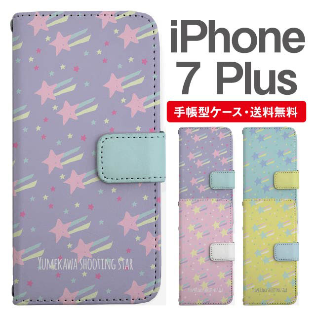 スマホケース 手帳型 iPhone7Plus アイフォン 携帯ケース カバー 送料無料 流れ星 スター ゆめかわ agesugi_ssm