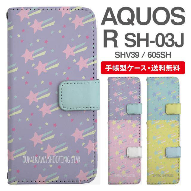 スマホケース 手帳型 AQUOS R アクオス SH-03J SHV39 605SH 携帯ケース カバー 送料無料 流れ星 スター ゆめかわ agesugi_ssm