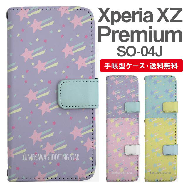 スマホケース 手帳型 Xperia XZ Premium エクスペリア SO-04J 携帯ケース カバー 送料無料 流れ星 スター ゆめかわ agesugi_ssm