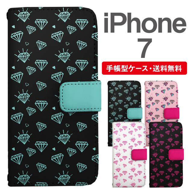 スマホケース 手帳型 iPhone7 アイフォン 携帯ケース カバー 送料無料 ダイヤモンド柄 agesugi_ssm