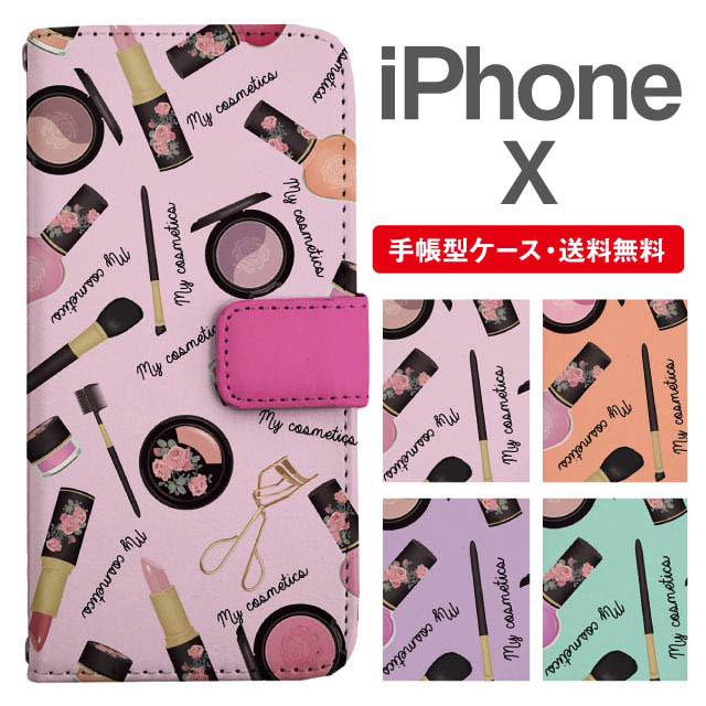 スマホケース 手帳型 iPhone X アイフォン 携帯ケース カバー 送料無料 コスメ柄 agesugi_ssm
