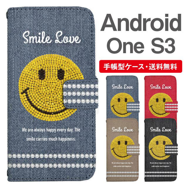 スマホケース 手帳型 Android One S3 アンドロイドワン 携帯ケース カバー 送料無料 スマイリー スマイル ニコちゃん agesugi_ssm