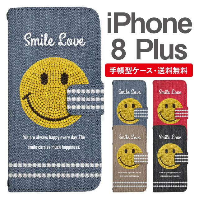 スマホケース 手帳型 iPhone8Plus アイフォン 携帯ケース カバー 送料無料 スマイリー スマイル ニコちゃん agesugi_ssm