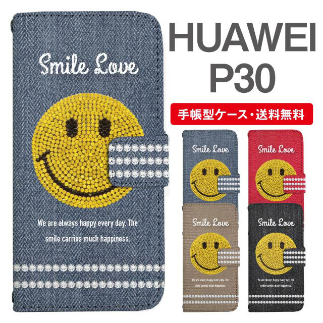 スマホケース 手帳型 HUAWEI P30 ファーウェイ 携帯ケース カバー 送料無料 スマイリー スマイル ニコちゃん agesugi_ssm