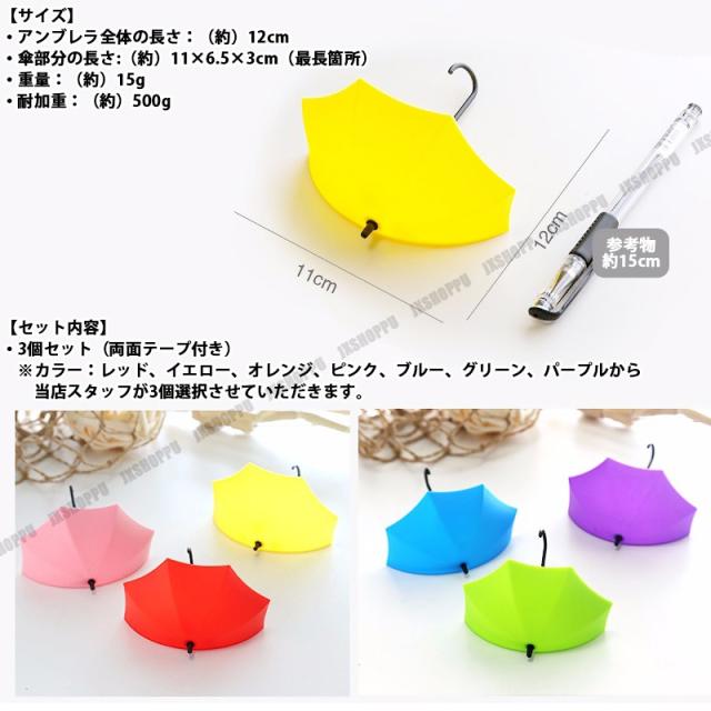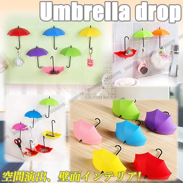 小物入れ アンブレラ ドロップ 3個セット 鍵掛け 収納 壁面 フック おしゃれ かわいい 空間 演出 傘 カラーランダム 小物を収納 送料無料