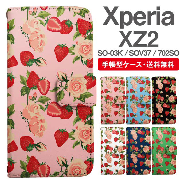 スマホケース 手帳型 Xperia XZ2 エクスペリア SO-03K SOV37 702SO 携帯ケース カバー 送料無料 ストロベリーいちご 花柄 フラワー ローズ バラ agesugi_ssm