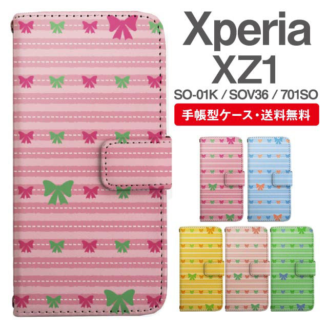 スマホケース 手帳型 Xperia XZ1 エクスペリア SO-01K SOV36 701SO 携帯ケース カバー 送料無料 リボン ボーダー agesugi_ssm
