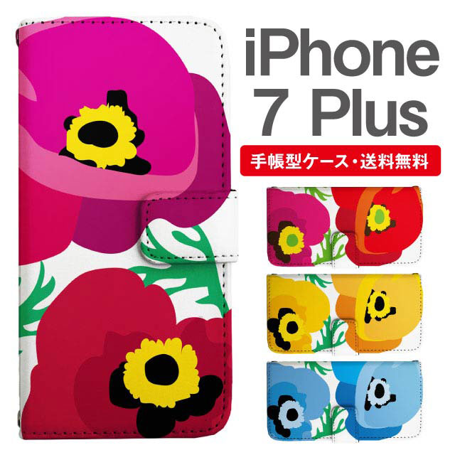 スマホケース 手帳型 iPhone7Plus アイフォン 携帯ケース カバー 送料無料 北欧 花柄 フラワー アネモネ agesugi_ssm