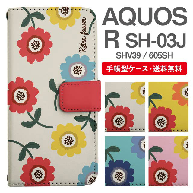スマホケース 手帳型 AQUOS R アクオス SH-03J SHV39 605SH 携帯ケース カバー 送料無料 花柄 フラワー agesugi_ssm