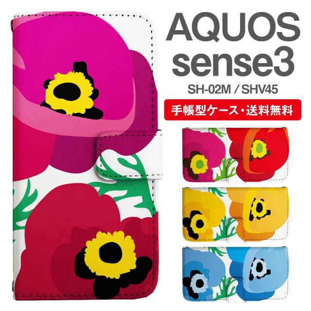 スマホケース 手帳型 AQUOS sense3 アクオス SH-02M SHV45 携帯ケース カバー 送料無料 北欧 花柄 フラワー アネモネ agesugi_ssm