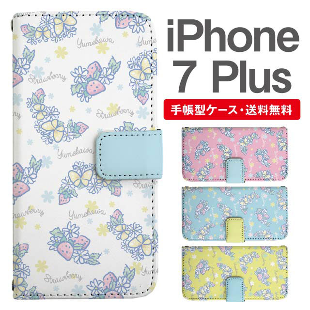 スマホケース 手帳型 iPhone7Plus アイフォン 携帯ケース カバー 送料無料 ストロベリー いちご バタフライ ゆめかわ agesugi_ssm