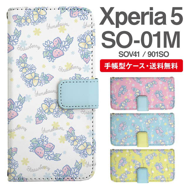 スマホケース 手帳型 Xperia 5 エクスペリア SO-01M SOV41 901SO 携帯ケース カバー 送料無料 ストロベリー いちご バタフライ ゆめかわ agesugi_ssm