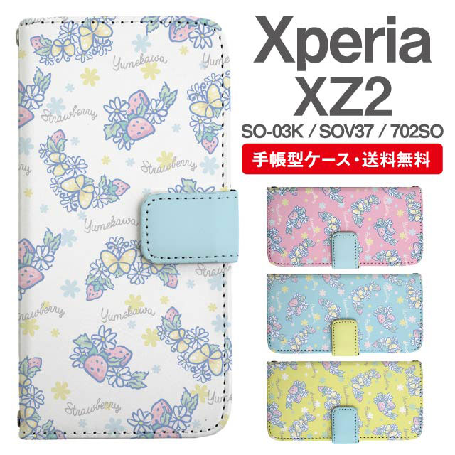 スマホケース 手帳型 Xperia XZ2 エクスペリア SO-03K SOV37 702SO 携帯ケース カバー 送料無料 ストロベリー いちご バタフライ ゆめかわ agesugi_ssm