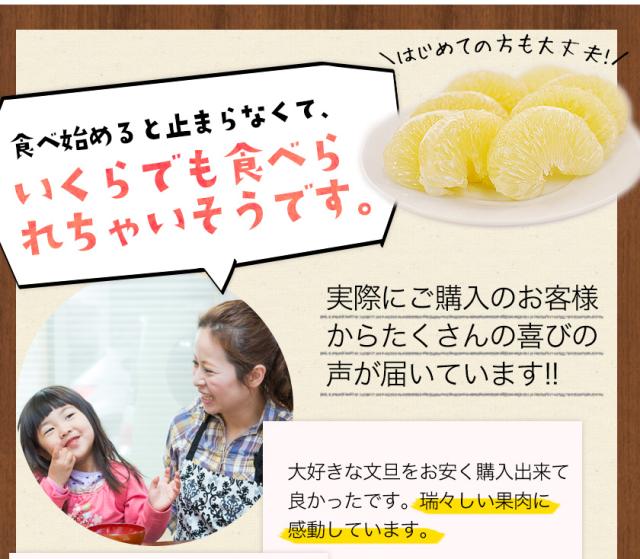 - 文旦をスーパーで初めて買って、あまりの美味しさにこちらで箱買いしました。 大きな立派なものを含めて大きさはバラバラでしたが、甘くて爽やかで最後まで美味しくいただきました!