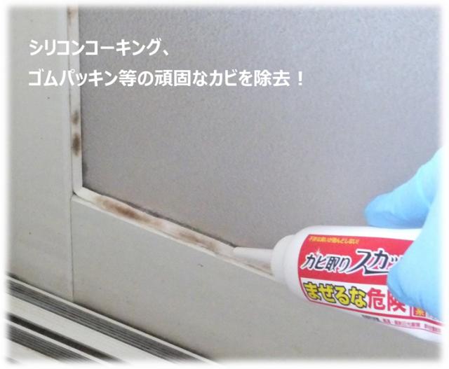 シリコンコーキング、ゴムパッキン等の頑固なカビを除去