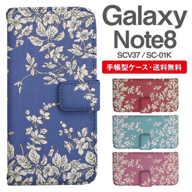 スマホケース 手帳型 Galaxy Note8 ギャラクシー SC-01K SCV37 携帯ケース カバー 送料無料 花柄 フラワー ボタニカル agesugi_ssm