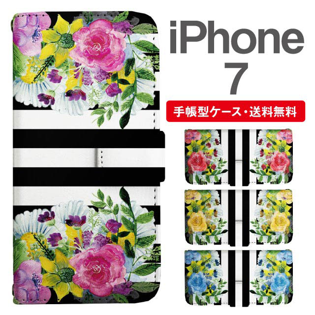 スマホケース 手帳型 iPhone7 アイフォン 携帯ケース カバー 送料無料 花柄 フラワー ボーダー agesugi_ssm