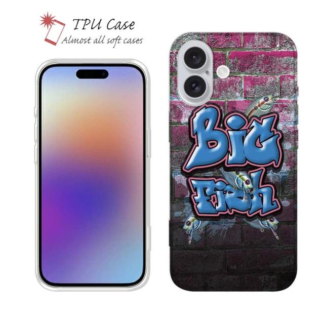 ソフトケース iPhone17 Pro Max iPhone Air クリアケース iPhone16e Pro Max iPhone15 Pro Max iPhone14 Plus iPhone13 mini Xperia 10 VII Galaxy AQUOS sense arrows Pixel10 Pro XL 釣り 魚 ルアー セット TPU 透明 BIG FISH 壁落書き風 ブルー