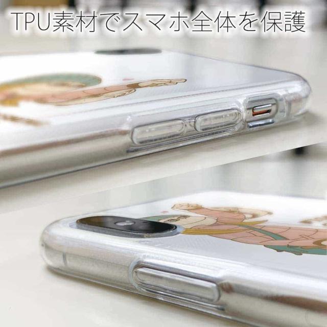 | ケースの素材について | 側面はゴムのように柔らかいTPU素材で、スマホ本体を守ります。万が一の落下でもケースが割れることがなく、耐久性の高いケースとなります。クリア(透明)のTPUケースにプリントしていますので、スマホ本体のカラーを活かしながらデザインケースが楽しめます。 |