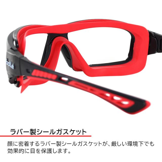 顔に密着するラバーシールガスケットが厳しい環境下でも効果的に目を保護します。
