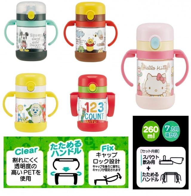 折りたたみ式 両手ハンドル スパウト マグ キャラクター ベビー キッズ 水筒 260ml スケーター KSPW1 キティ ミッキー プー いないいないばあ はらぺこあおむし