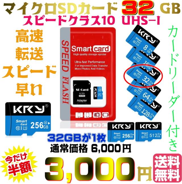 【送料無料・税込み】32GB マイクロ SD カード Micro SD card class 10 クラス UHS 1 激安 爆速 3年保証 記録 媒体 書き込み 読み込み TF 高品質 アダプター付き