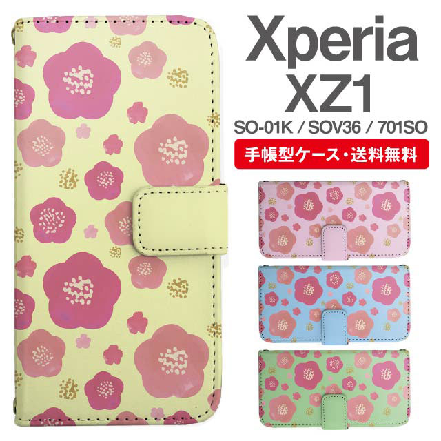 スマホケース 手帳型 Xperia XZ1 エクスペリア SO-01K SOV36 701SO 携帯ケース カバー 送料無料 花柄 フラワー 梅 agesugi_ssm