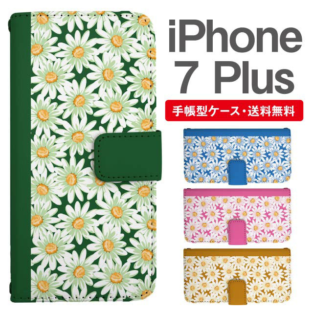スマホケース 手帳型 iPhone7Plus アイフォン 携帯ケース カバー 送料無料 花柄 フラワー マーガレット agesugi_ssm