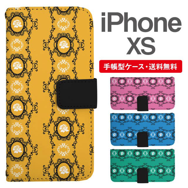 スマホケース 手帳型 iPhone XS アイフォン 携帯ケース カバー 送料無料 アラベスク 花柄 フラワー エレガント agesugi_ssm