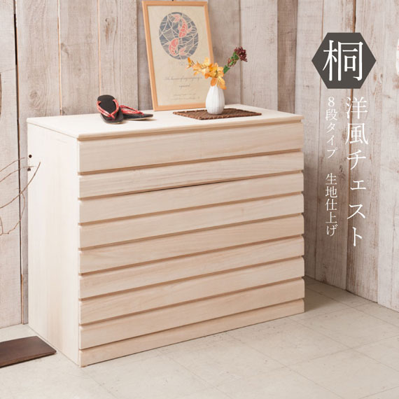 桐 洋風チェスト 生地仕上げ 8段タイプ (タンス 桐材 箪笥 和モダン シンプル クローゼット 着物 衣服 引出し 大川 ナチュラル 白木 着物 和装 和室 日本製 国産 おすすめ おしゃれ)