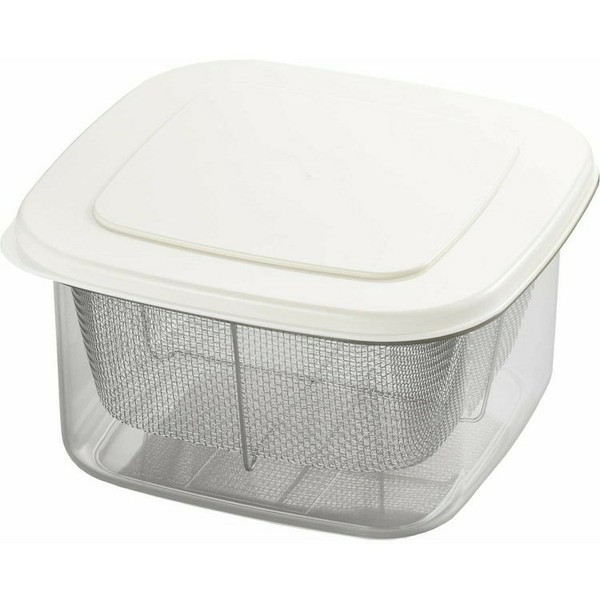 ニューキッチンベーシック 四角い保存容器(水切りザル付) SJ2964 ザル付き 水切り レンジ対応可能 角型 豆腐水切り アサリの砂抜き 便利 コンパクト 保存容器 下ごしらえ