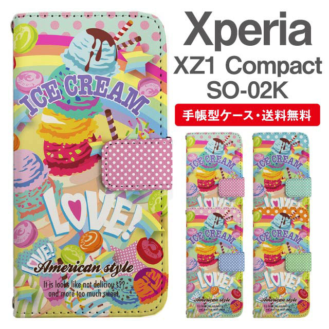 スマホケース 手帳型 Xperia XZ1 Compact エクスペリア SO-02K 携帯ケース カバー 送料無料 スイーツ柄 アイス マカロン ファンシー ポップ agesugi_ssm