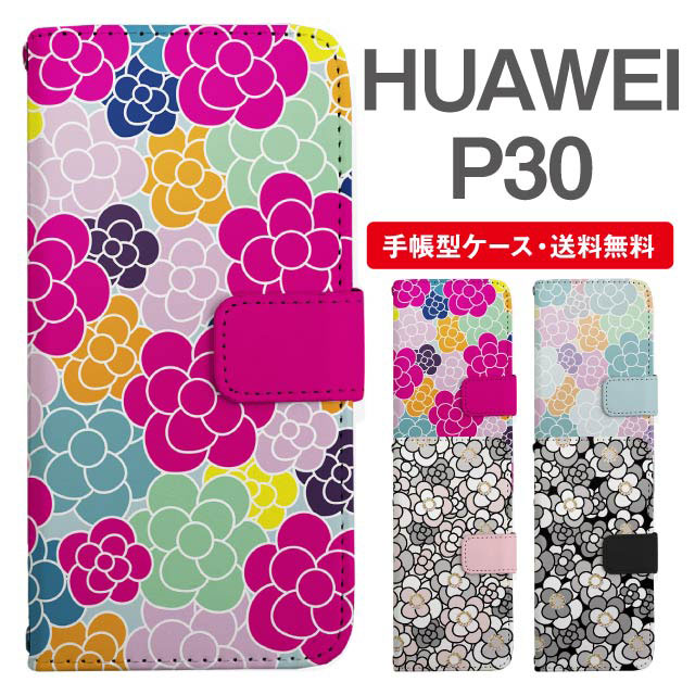 スマホケース 手帳型 HUAWEI P30 ファーウェイ 携帯ケース カバー 送料無料 花柄 フラワー カメリア agesugi_ssm