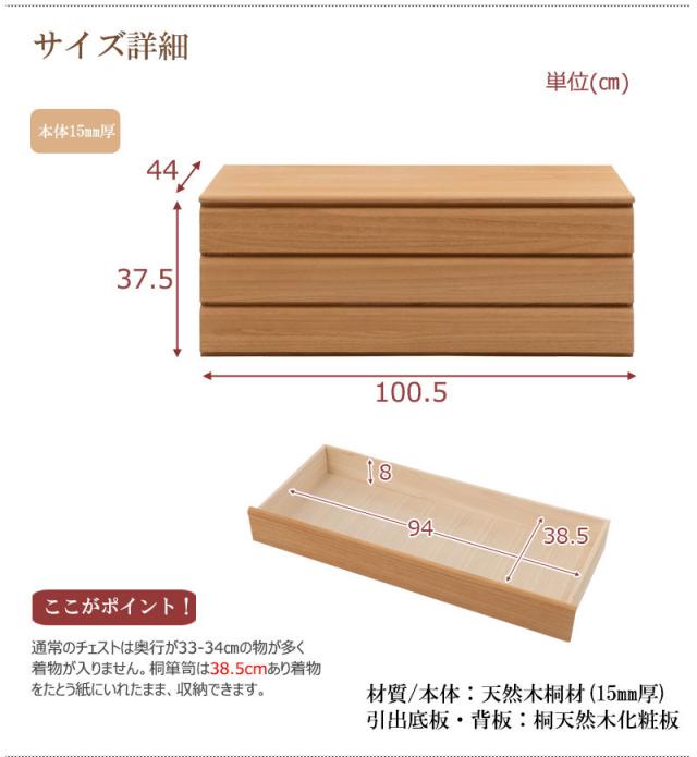 桐 洋風チェスト ナチュラル/ブラウン 3段タイプ (タンス 桐材 箪笥 和モダン シンプル クローゼット 着物 衣服 引出し 大川 ナチュラル ブラウン 着物 和装 和室 日本製 国産 おすすめ おしゃれ)