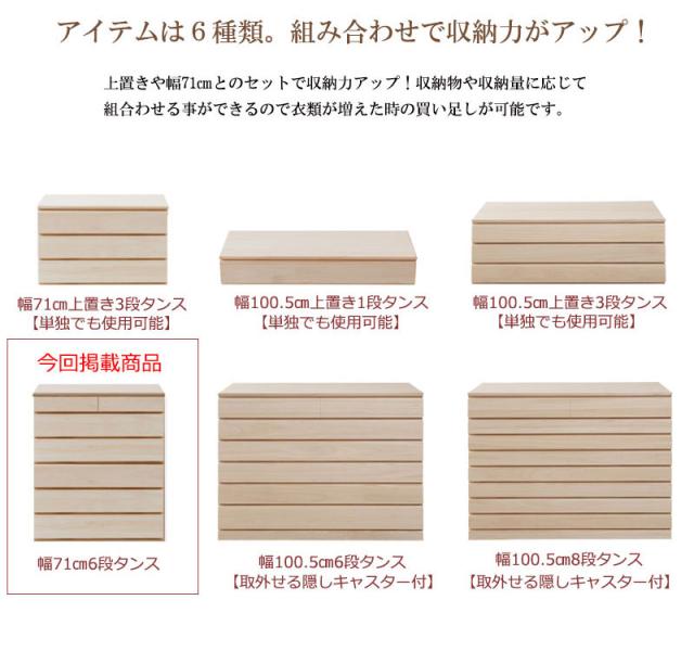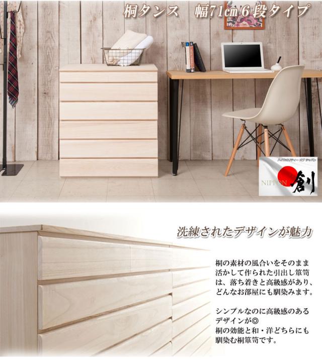 桐 洋風チェスト 生地仕上げ 6段タイプ 幅71cm (タンス 桐材 箪笥 和モダン シンプル クローゼット 着物 衣服 引出し 大川 ナチュラル 白木 着物 和装 和室 日本製 国産 おすすめ おしゃれ)