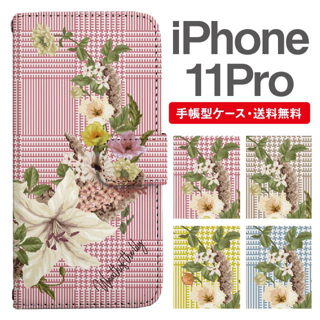 スマホケース 手帳型 iPhone 11 Pro アイフォン 携帯ケース カバー 送料無料 花柄 フラワーリース グレンチェック agesugi_ssm
