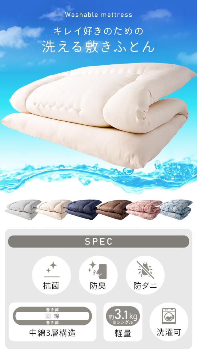 寝具 布団 敷き布団 洗える敷布団 敷布団 シングルロング シングル 敷き布団 シンプル コインランドリー 洗える 抗菌 防臭 防ダニ 3つ折り アイボリー ピンク ネイビー ブラウン ペイズリー柄ピンク ペイズリー柄ブルー グレー 新生活 インテリア