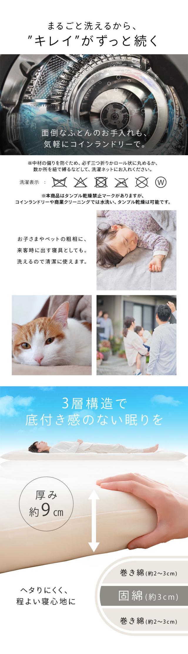 (検索用:敷布団 シングルロング シングル 敷き布団 シンプル コインランドリー 洗える 抗菌 防臭 防ダニ 3つ折り )